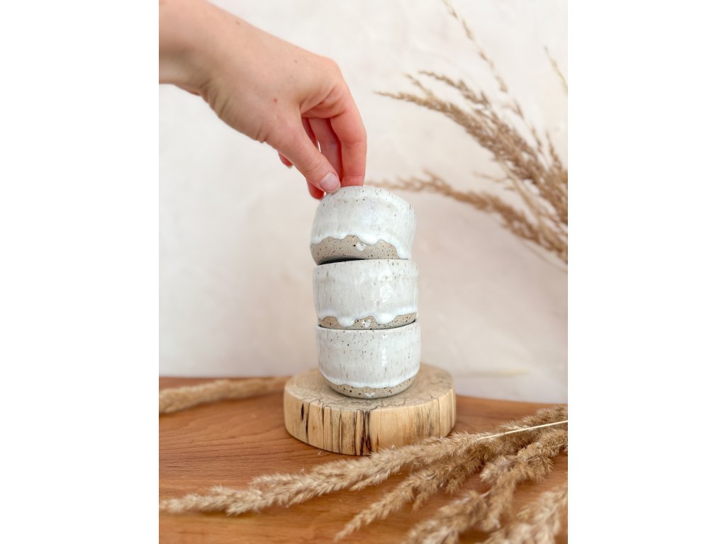 Jemná bílá glazura působí elegantně a nadčasově, a na spodním okraji se skrývá ručně malované bílé srdíčko – můj tichý podpis a připomínka krásy v jednoduchosti.