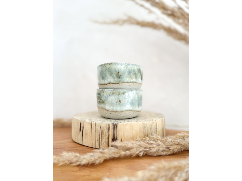 Tento hrníček jsem tvořila ručně, bez hrnčířského kruhu, takže každý detail je originál. Jeho teplé medové tóny krásně ladí s pohodovými chvilkami u čaje nebo kávy. Příjemně padne do ruky a zahřeje nejen nápoj, ale i duši. Srdce jsem malovala ručně pravým zlatem.
