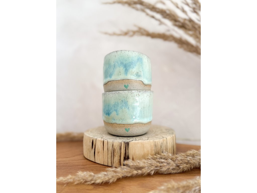Jemná zelená glazura v odstínu matcha latte připomíná svěží listy a ranní rosu, a na spodním okraji najdete ručně malované zelené srdíčko – můj tichý podpis a symbol radosti z pomalých okamžiků.