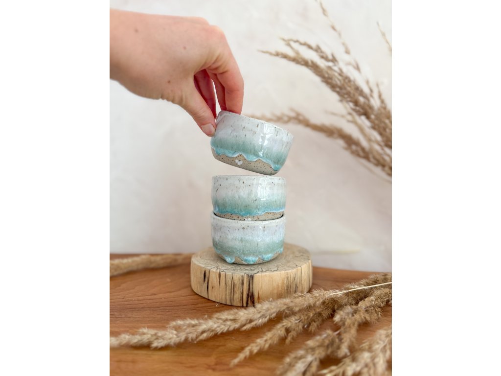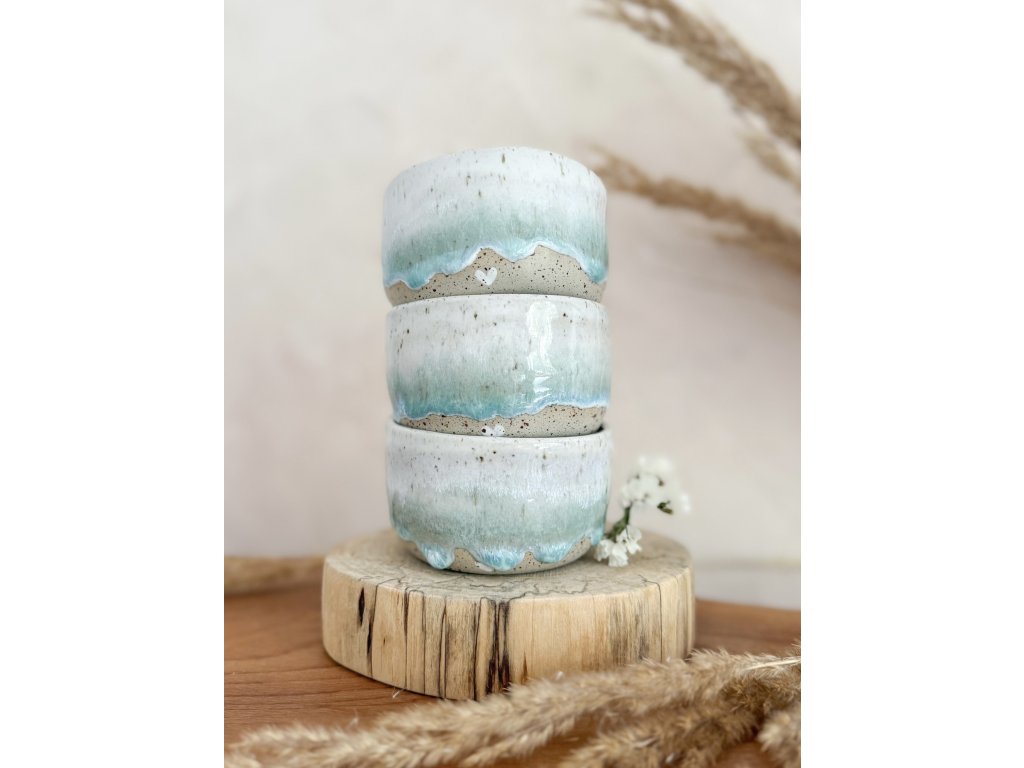 Každý doušek cappuccina může být jako chvilka na pobřeží, s vůní slaného vzduchu a zvukem šumících vln. Tento kalíšek jsem vytvořila zcela ručně, bez použití hrnčířského kruhu, takže má svůj jedinečný tvar a vlastní příběh.